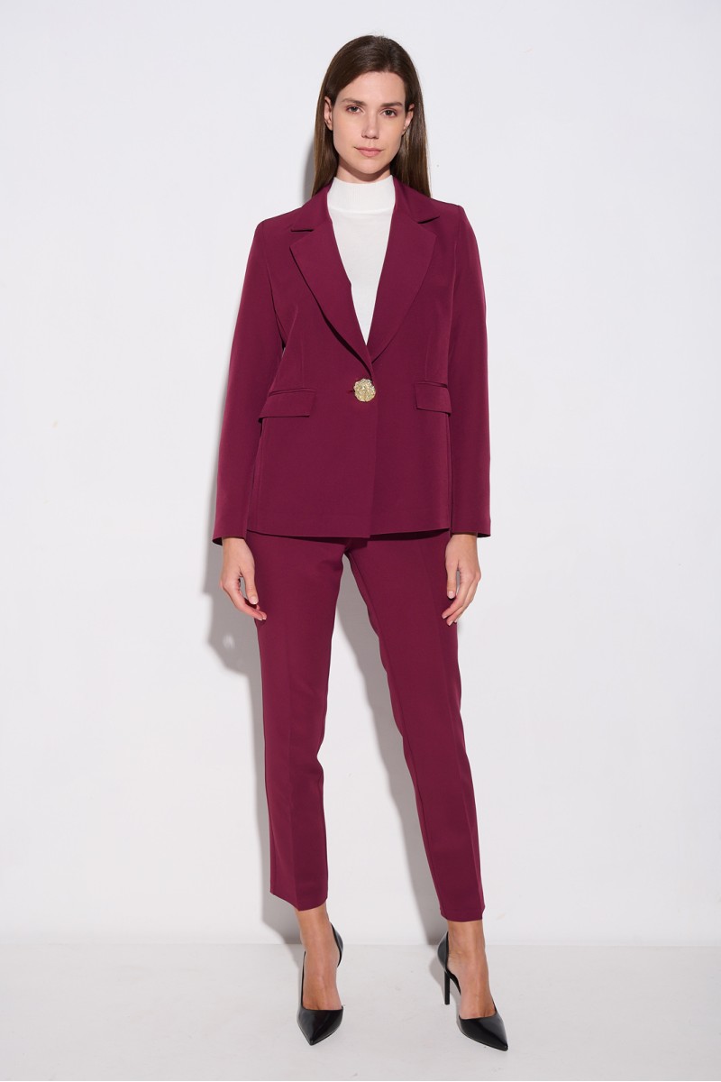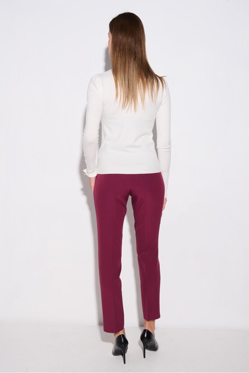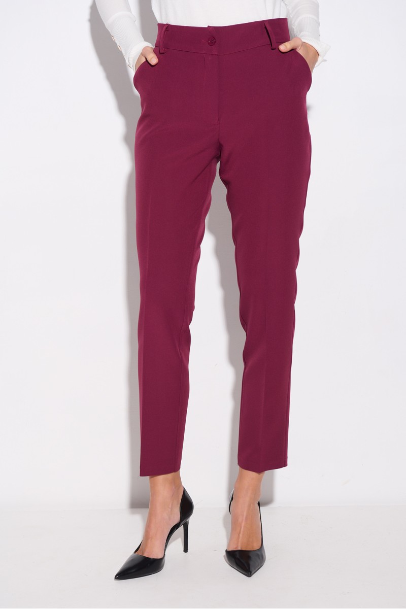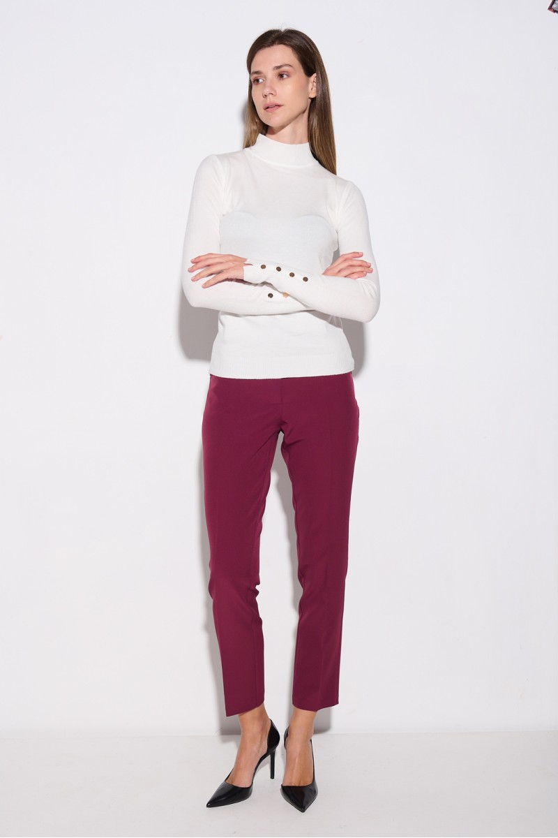 High-waisted crepe pants, front pockets, front closure with zipper and button.