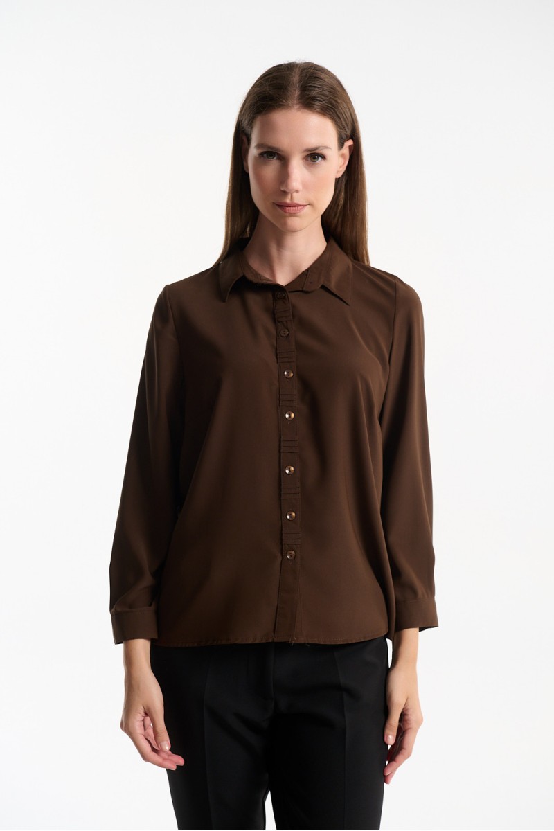 Georgette shirt with collar, long sleeves with cuffs and button, front button closure.