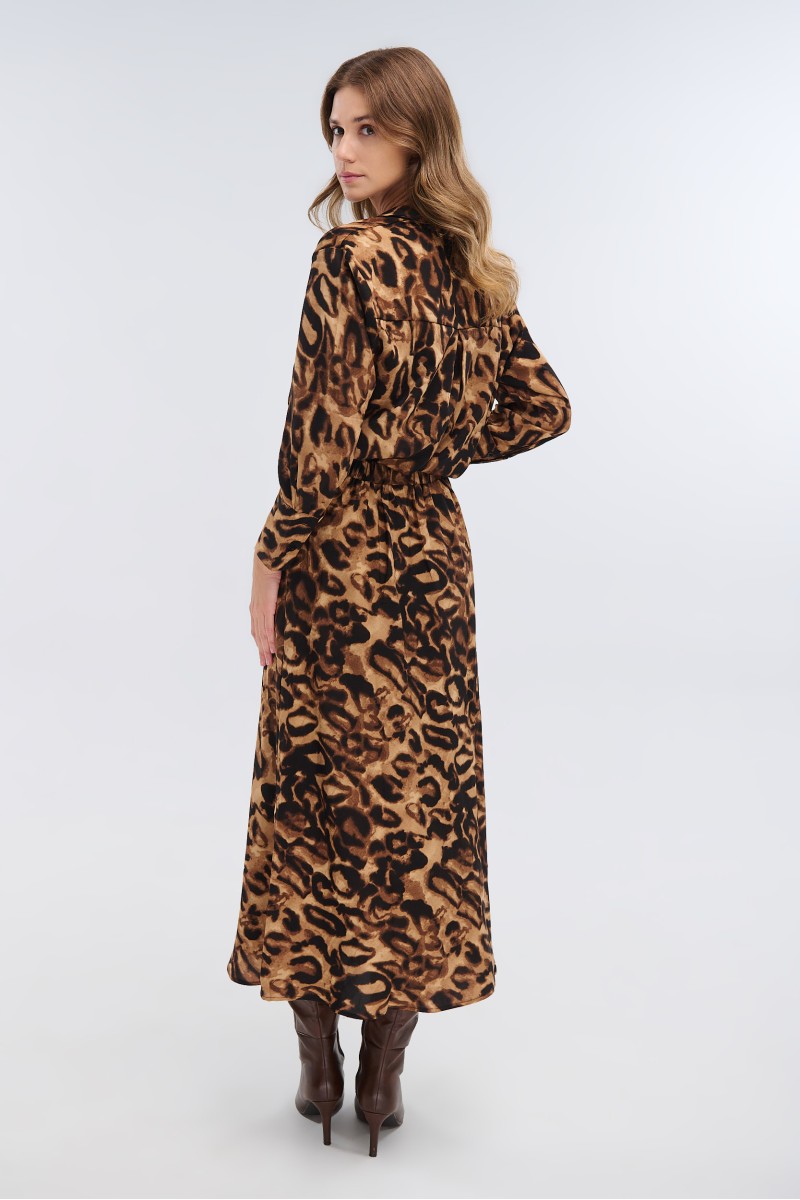 Animal print set consisting of a long-sleeved shirt that ends with cuffs and buttons, pleat at the back, long skirt with elastic at the back of the waist.