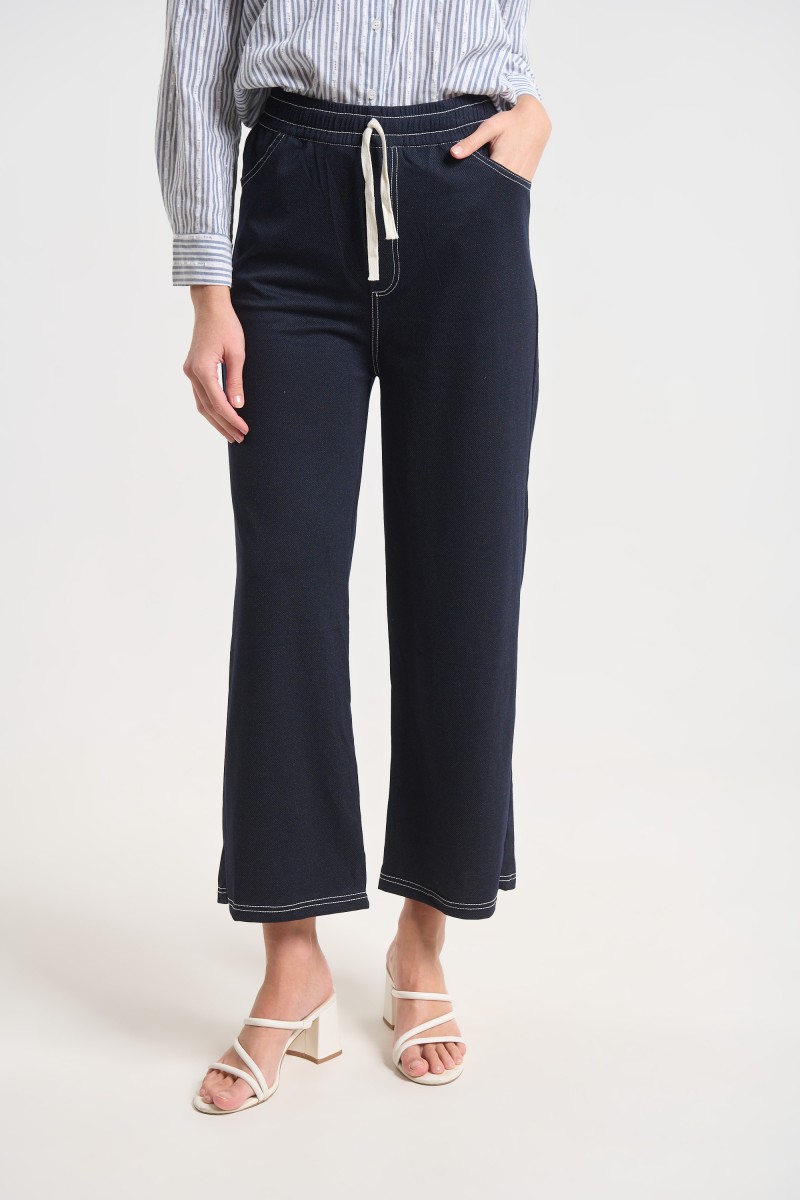 High-waisted wide-leg pants with elastic waistband