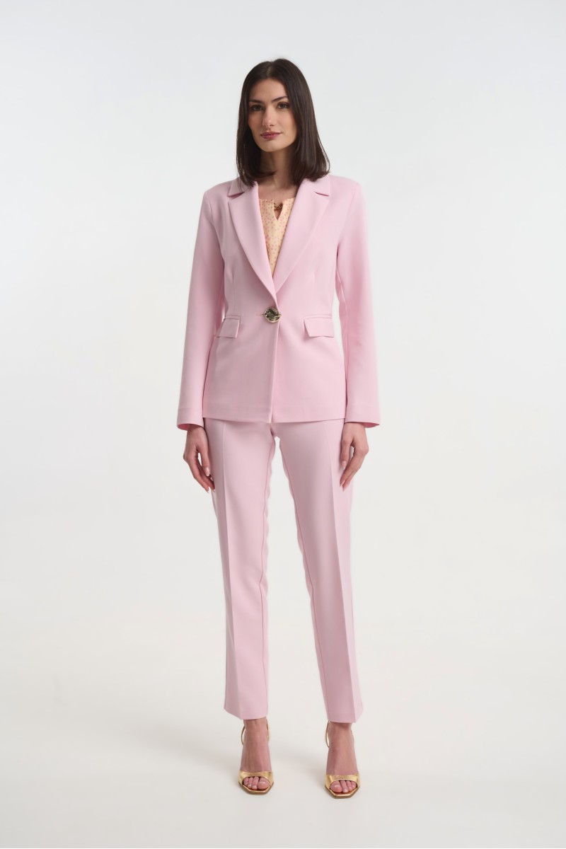 High-waisted crepe pants, front pockets, front closure with zipper and button.