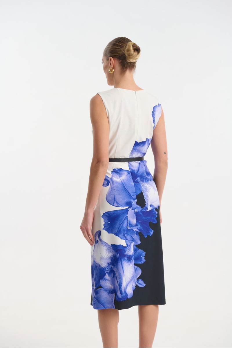 Midi sleeveless printed dress, with a back zipper closure, fully lined.