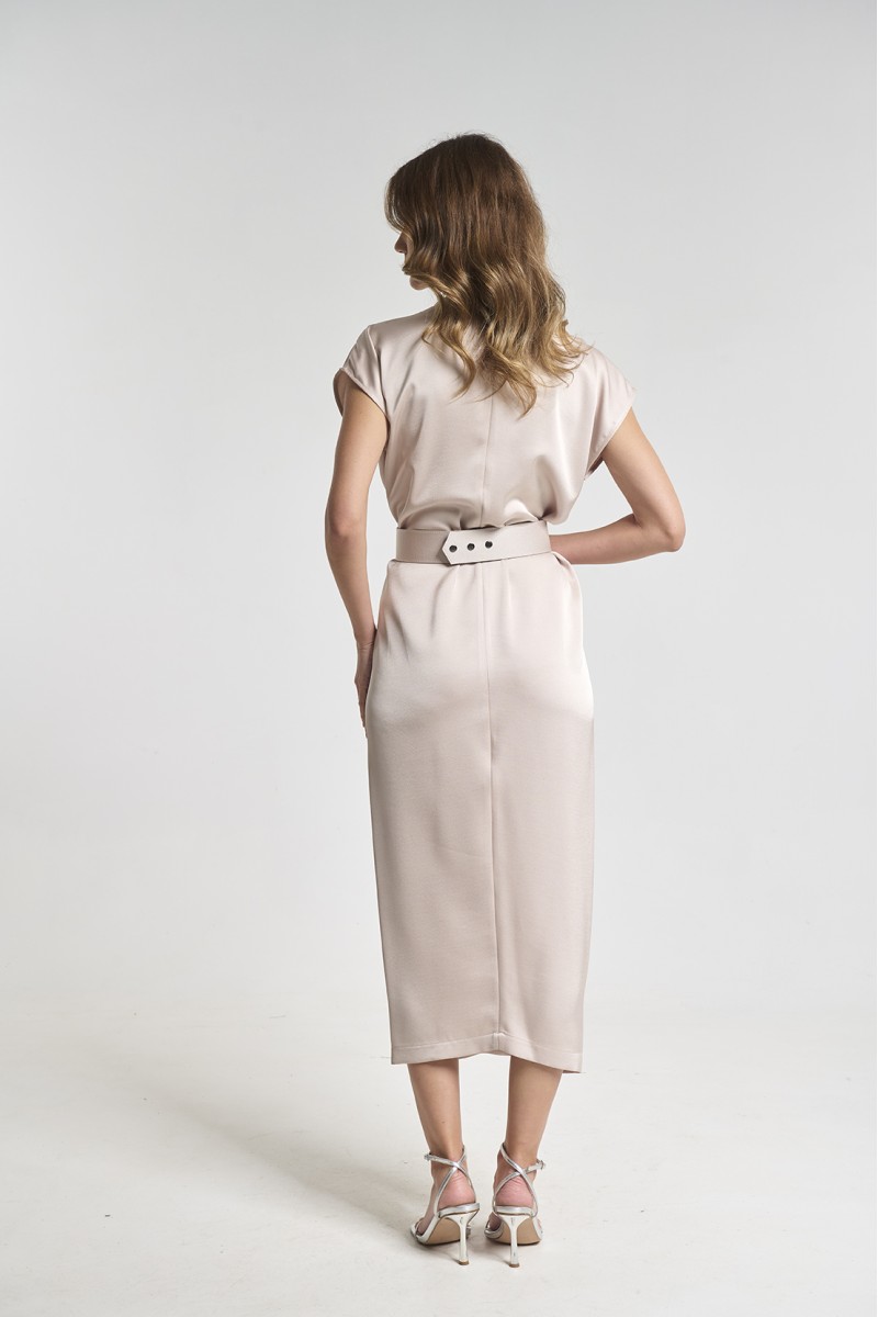 Satin dress with belt