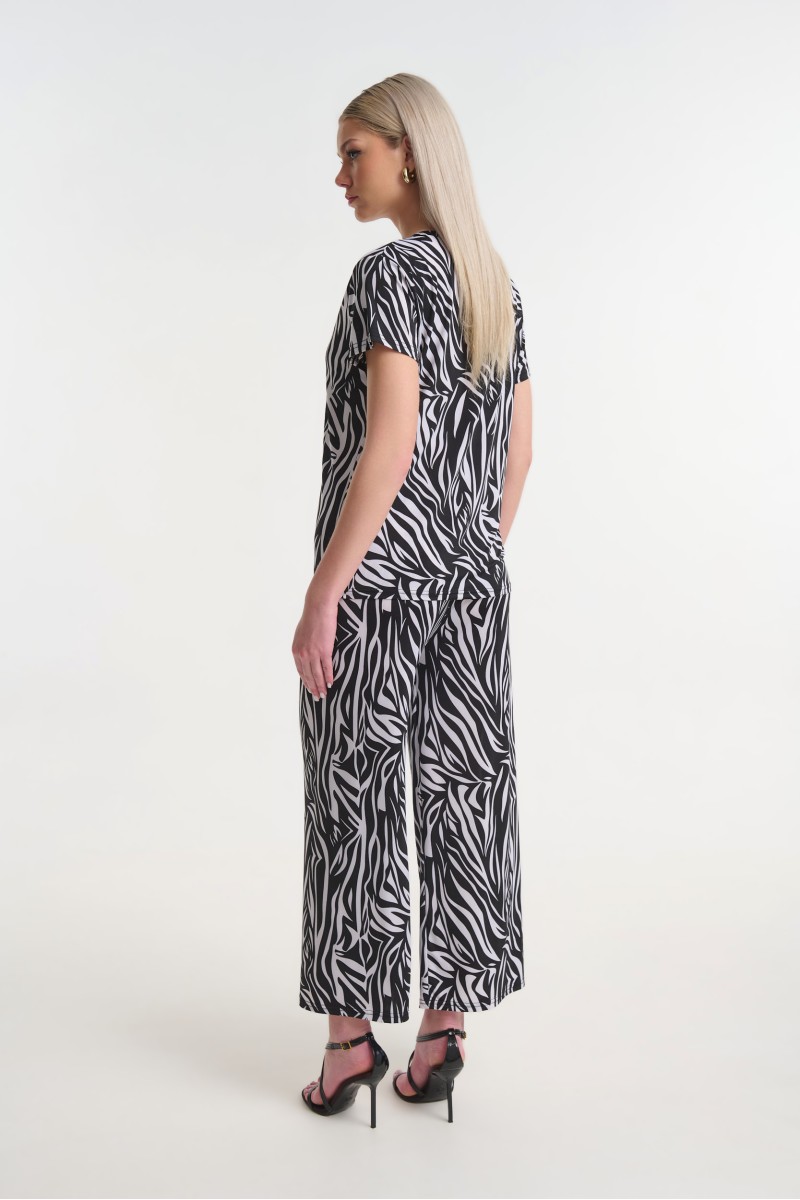 Jersey stretch set consisting of elastic waist pants and a short-sleeve top.
