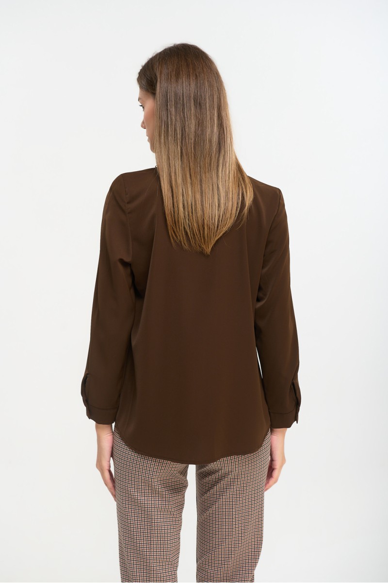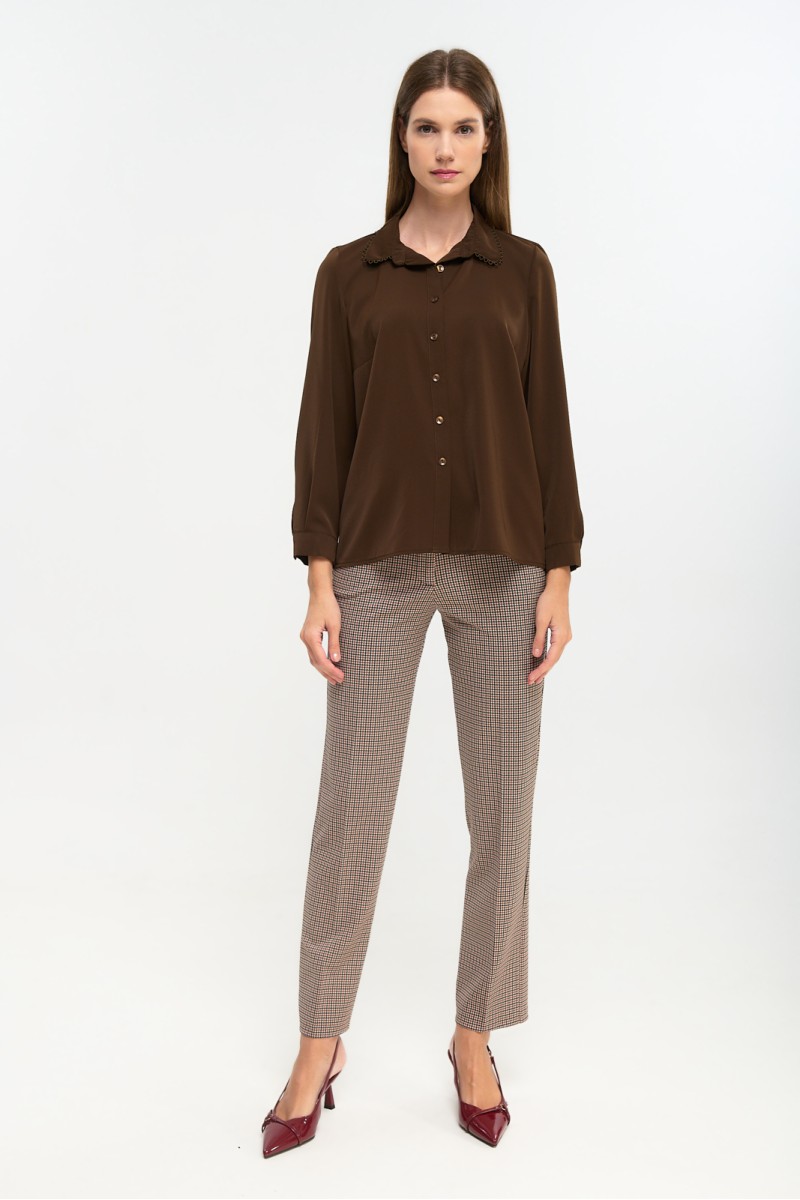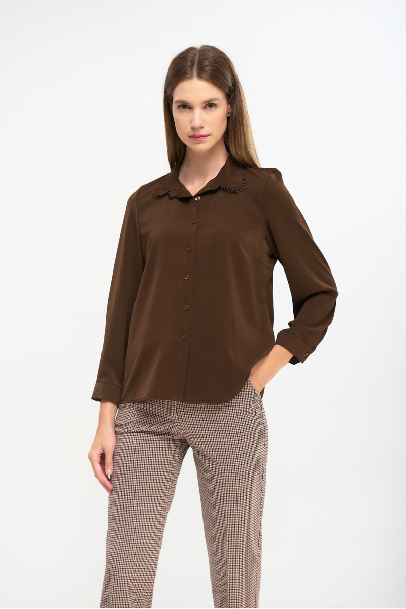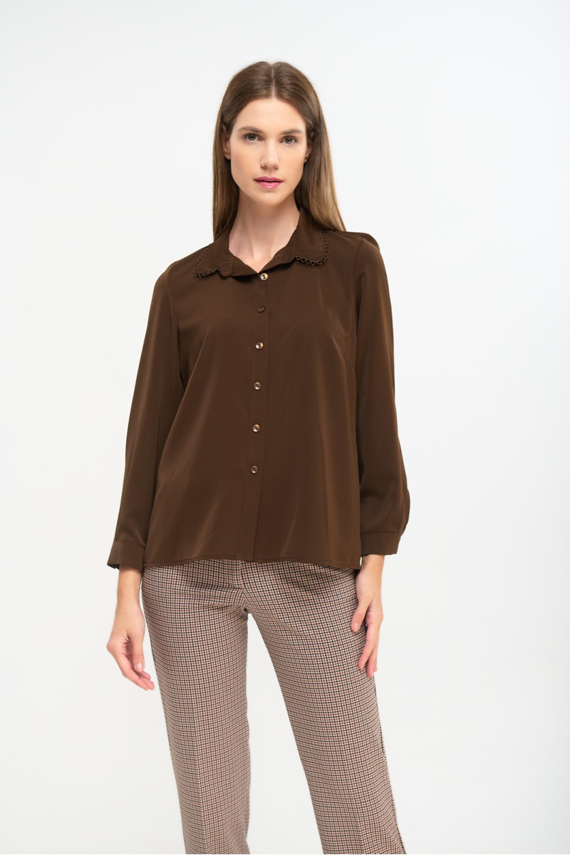 Πουκάμισο ζορζέτα με σχέδιο στον γιακά, μακρύ μανίκι με μανσέτα και κουμπί, κλείσιμο μπροστά με κουμπιά.