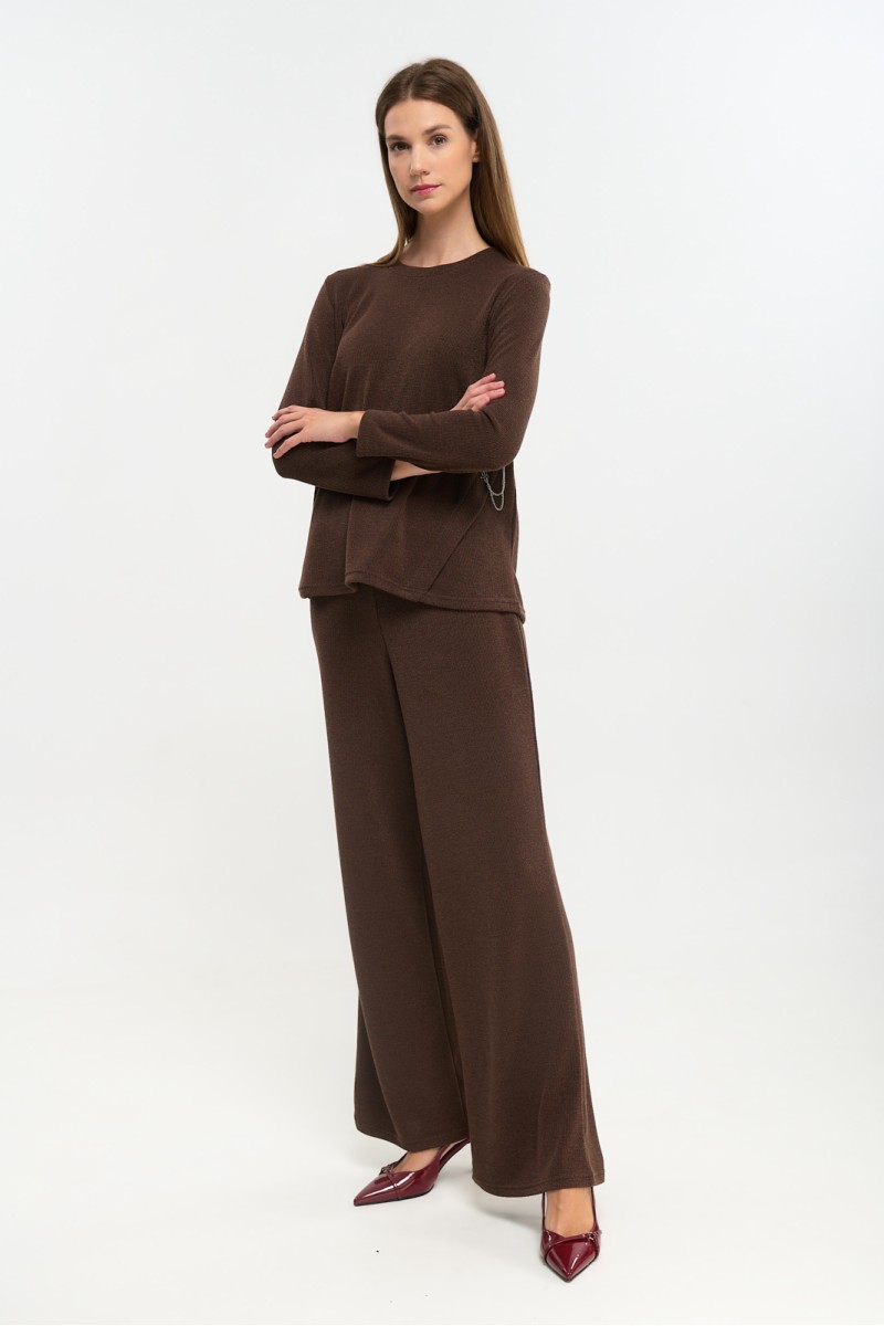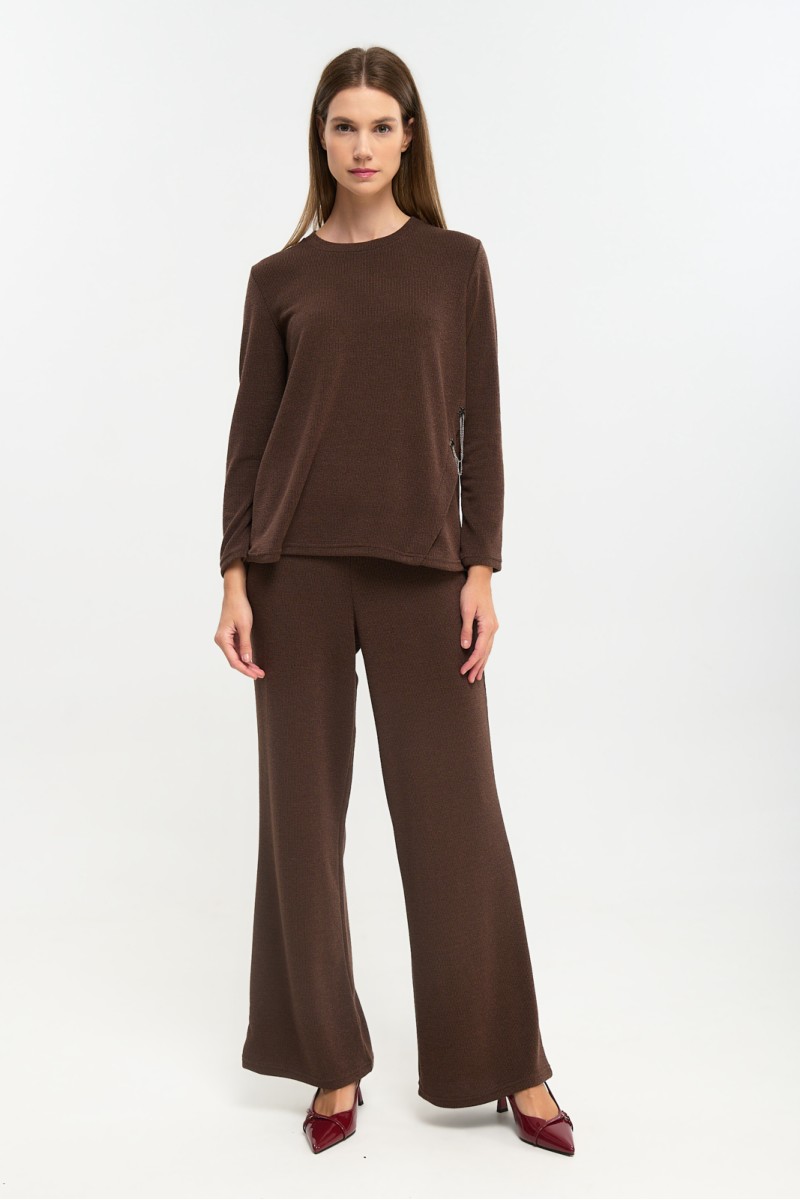 Ελαστική ριπ παντελόνα με λάστιχο στη μέση.