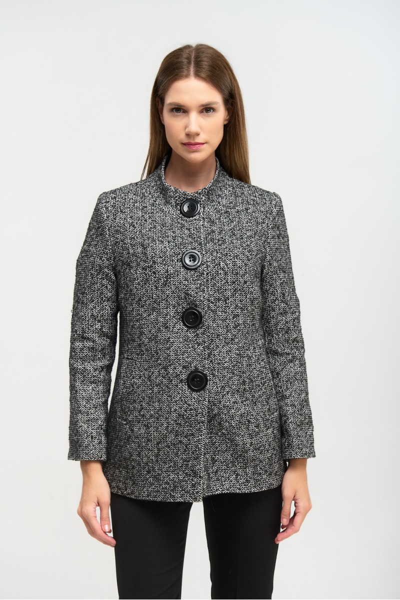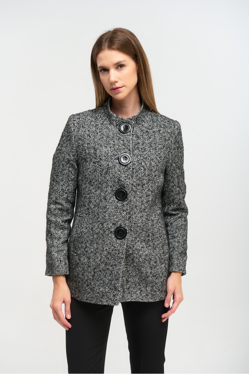 Σακάκι σε στυλ ζακέτας, μακρύ μανίκι, μπροστινές τσέπες με ρέλι, κλείσιμο μπροστά με κουμπιά, φοδραρισμένο.