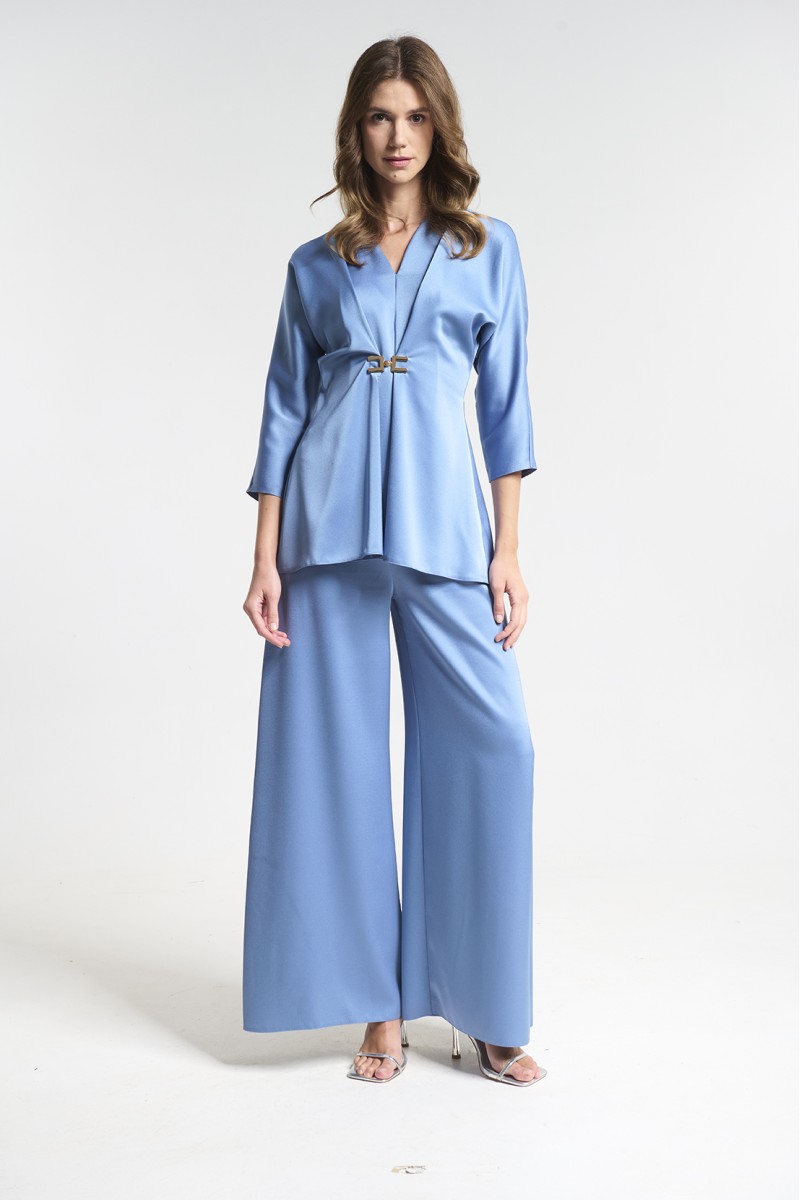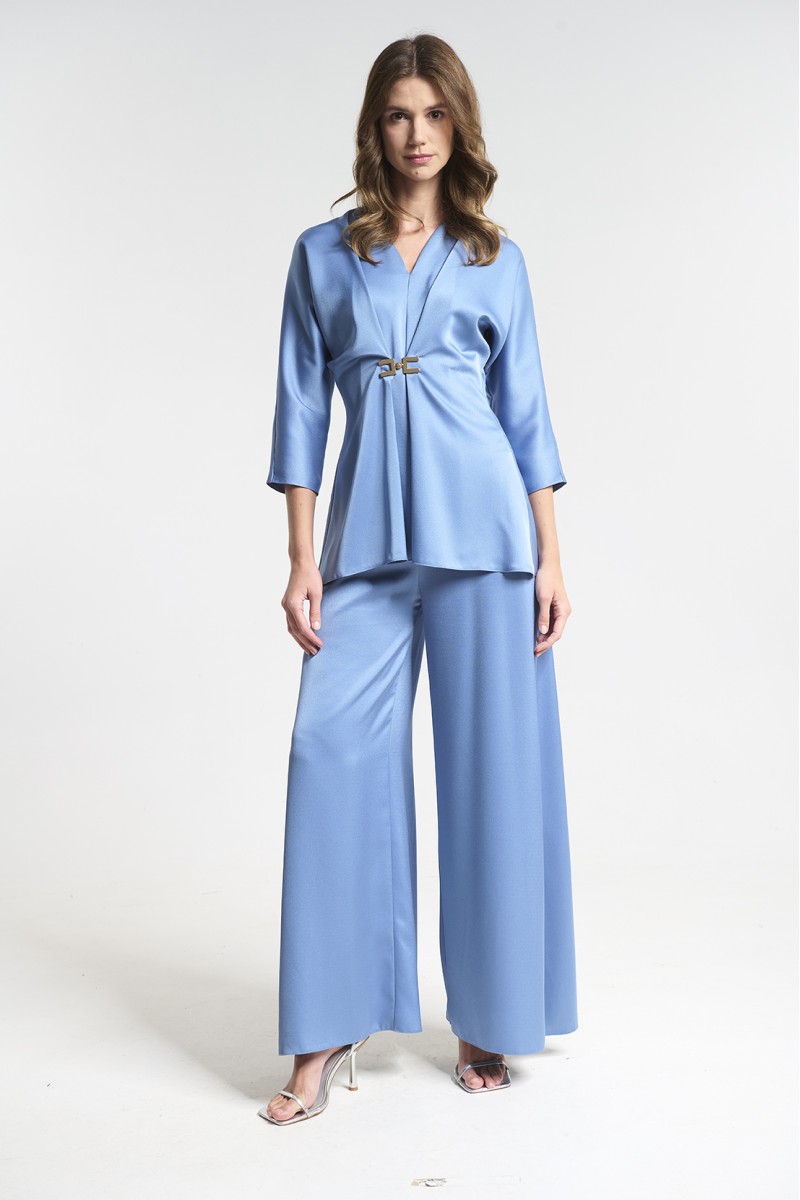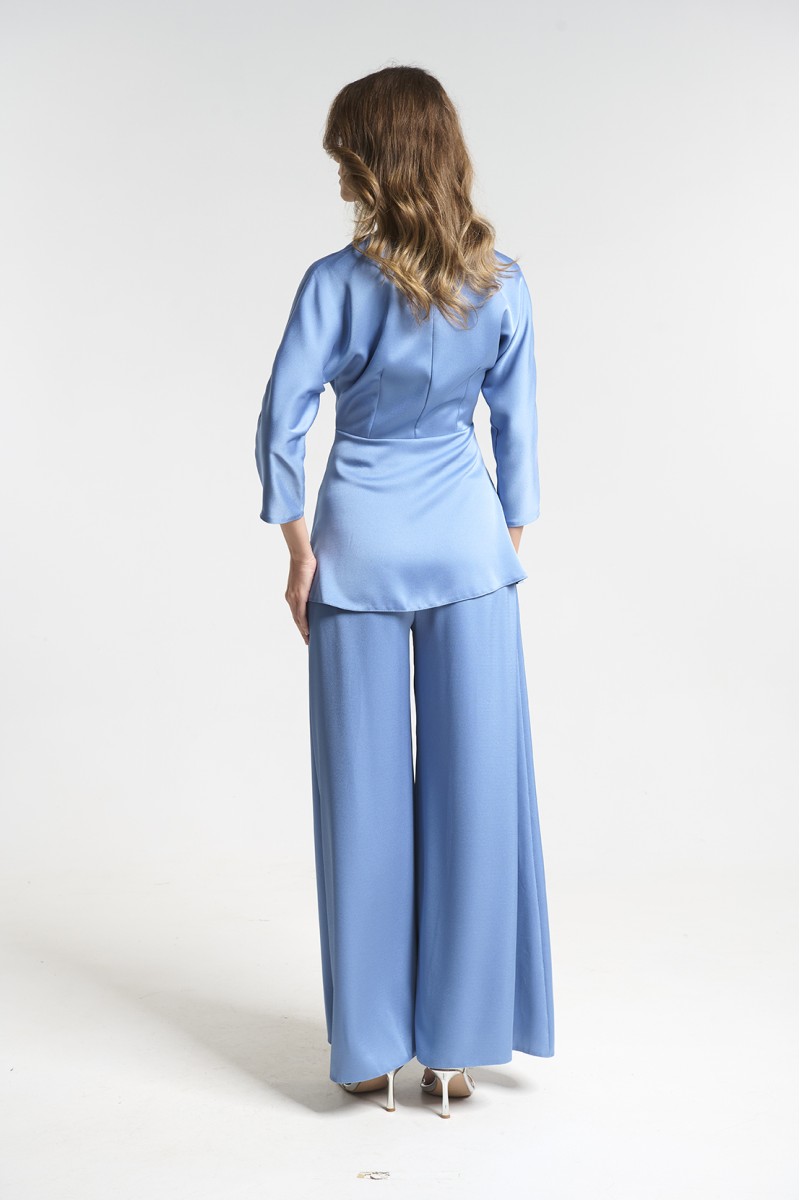Σετ σατεν παντελόνι με μπλούζα